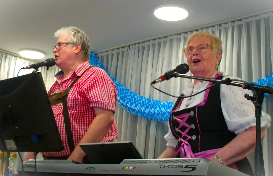 Stimmungsvolle Musik und ein Gläschen Wein, mehr braucht es nicht zum glücklich sein. Das Duo Albatros lud zum Weinfest, und die Stimmung im Festsaal war wieder einmal ausgelassen und fröhlich. Neben zünftiger Live-Musik und geselligem Beisammensein gab es für das leibliche Wohl leckere Laugenstangen und natürlich eine breite Auswahl an erlesenen Weinen für die Bewohner*innen. Die Seniorinnen und Senioren ließen sich die edlen Tropfen und das Gebäck schmecken und feierten gut gelaunt mit, während das Duo Albatros, wie gewohnt, eine großartige Show hinlegte. Natürlich durfte bei einem ausgelassenen Nachmittag wie diesem die ein oder andere Tanzeinlage nicht fehlen, und das Mitklatschen und -schunkeln lief praktisch von ganz allein. Das Duo Albatros versteht es wie niemand sonst, die Bewohner*innen zum Mitmachen zu motivieren, so dass bei jedem Auftritt die Stimmung außer Rand und Band gerät und die Fetzen fliegen!